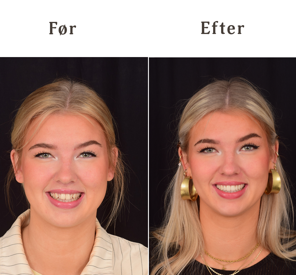 For at fastholde tændernes nye position anbefaler vi brug af natskinner. Disse skinner bæres om natten og hjælper med at forhindre, at dine tænder glider tilbage til deres oprindelige stilling. Tre sæt natskinner er inkluderet i din behandlingspris.